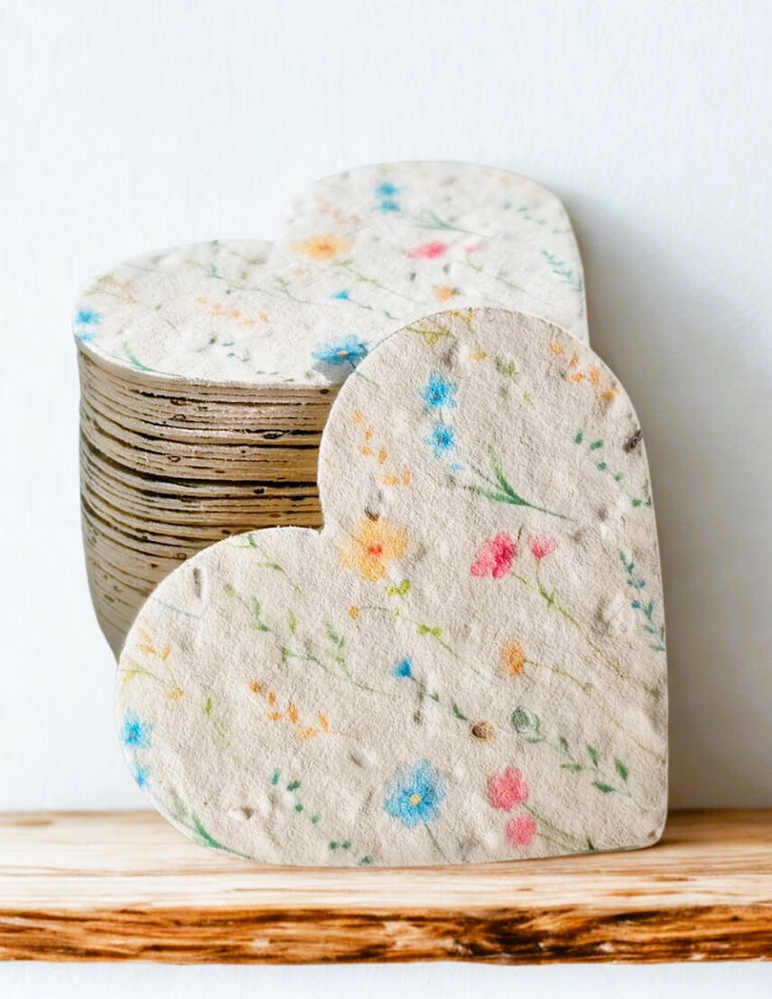 A plantable paper heart handmade in Canada using recycled paper and non-invasive wildflower seeds. Perfect as a giftable extra, a seasonal gesture, or a charming garden-inspired touch.