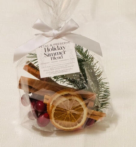 A fragrant blend of citrus, spices, and dried botanicals to fill your home with warm, festive aroma.Simply add to a pot of water or a simmer pot and enjoy hours of cozy holiday fragrance.Perfect for gifting or stocking stuffers.
