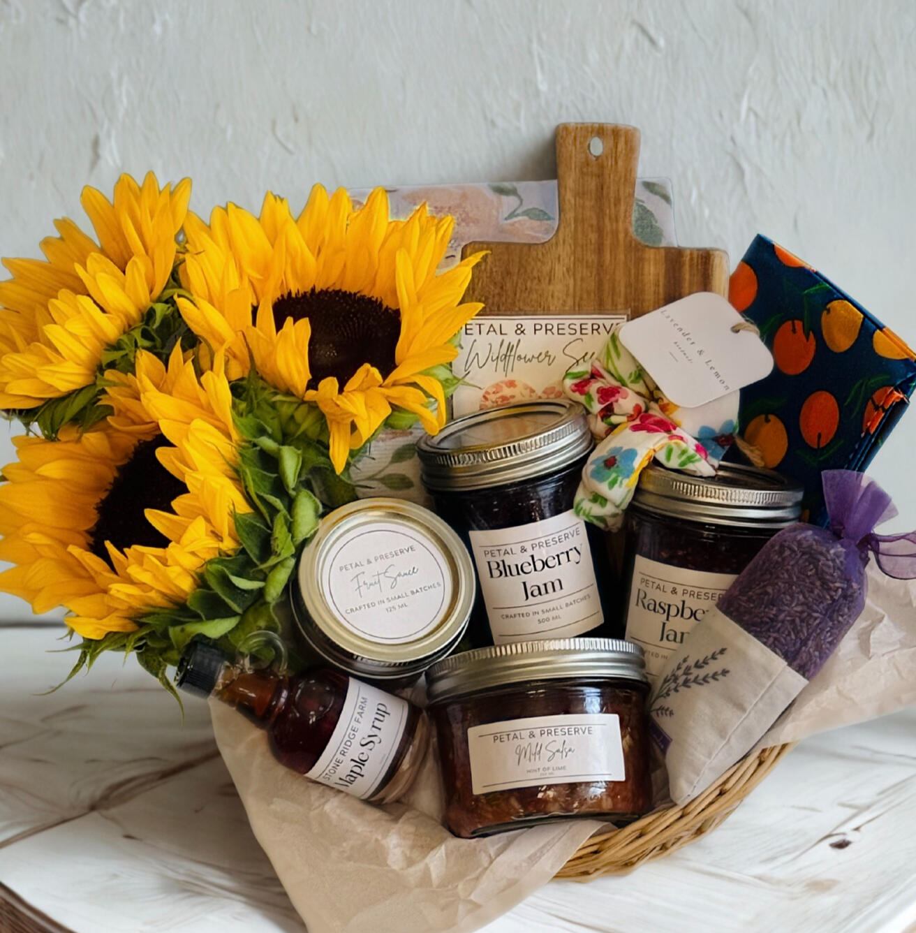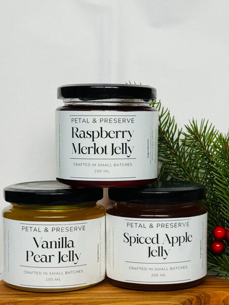 Petal & Preserve offers small-batch preserves, curated gift baskets, and seasonal pantry items made with homegrown ingredients and simple, meaningful details.Each product is crafted with care to bring warmth, flavour, and a sense of occasion - whether you're gifting to someone special, celebrating a client, or treating yourself to something delicious.