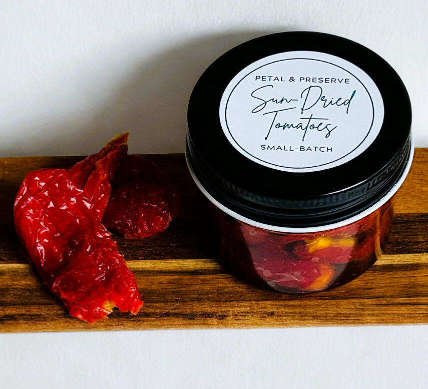 Slow-dried garden tomatoes packed in oil and herbs — an instant pasta or sandwich upgrade.